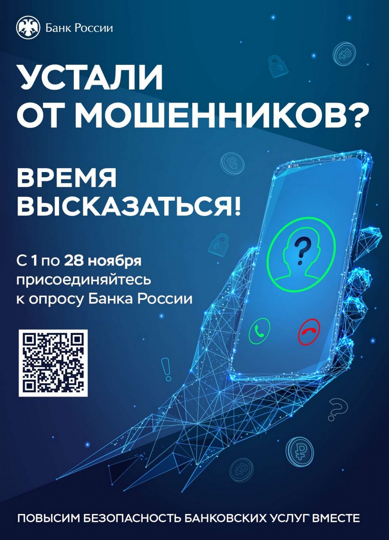 C 1 по 28 ноября 2025 года Центральным Банком Российской Федерации проводится ежегодный опрос на тему «Степень удовлетворённости населения уровнем безопасности финансовых услуг, оказываемых организациями кредитно-финансовой сферы».